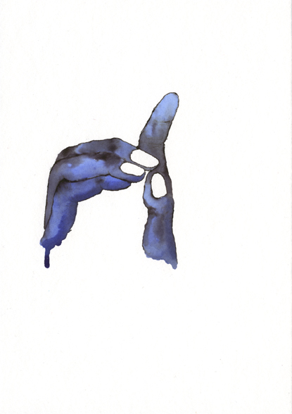 Série de dessins à l’encre et au stylo à plume, 21 x 14,8 cm, d’après des photos de mains d’amis, 2012.